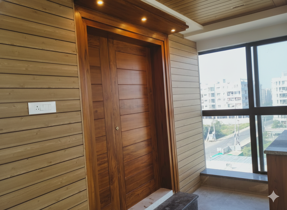 East-facing entrance veranda with premium teakwood door