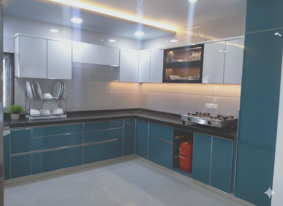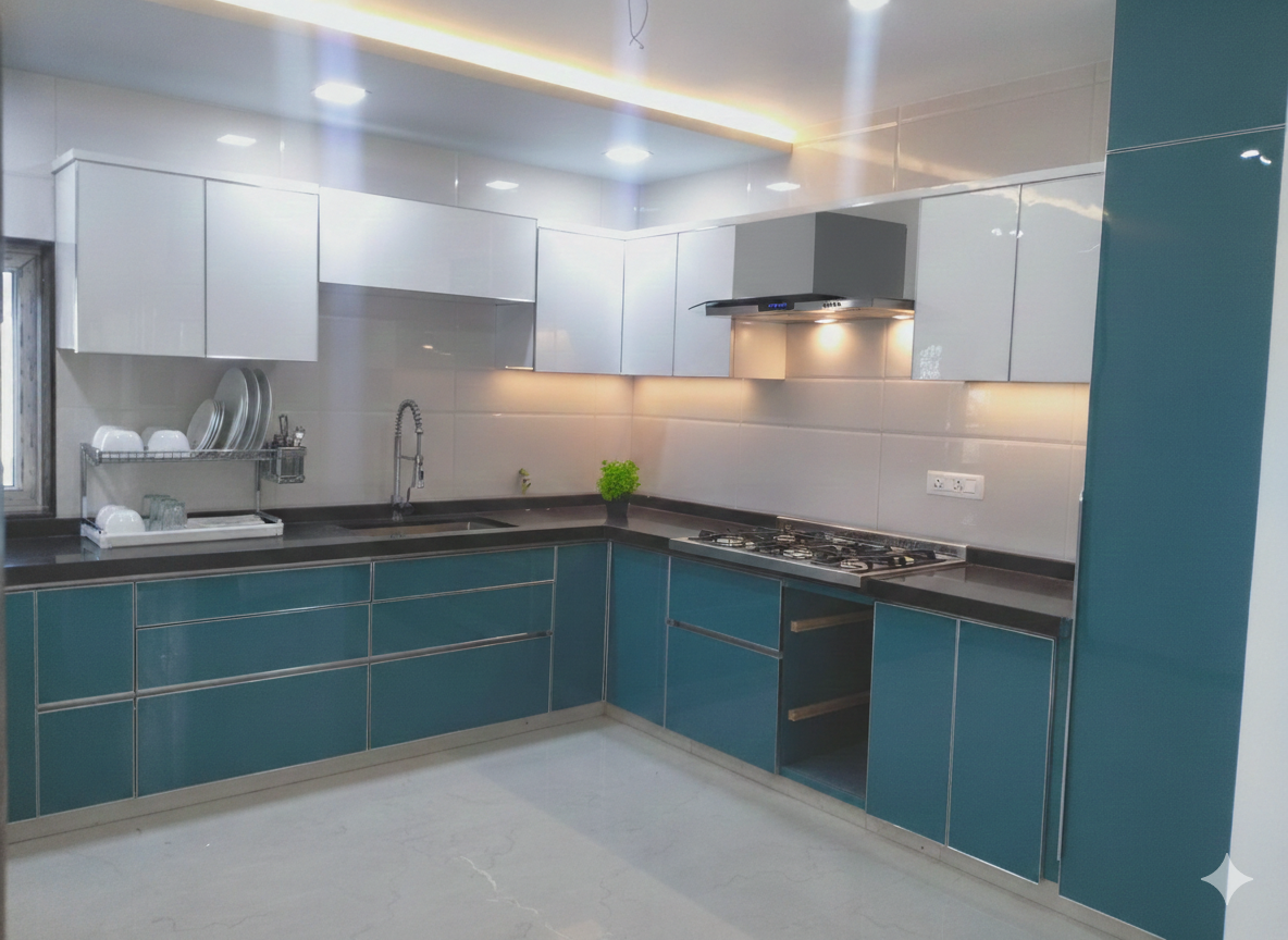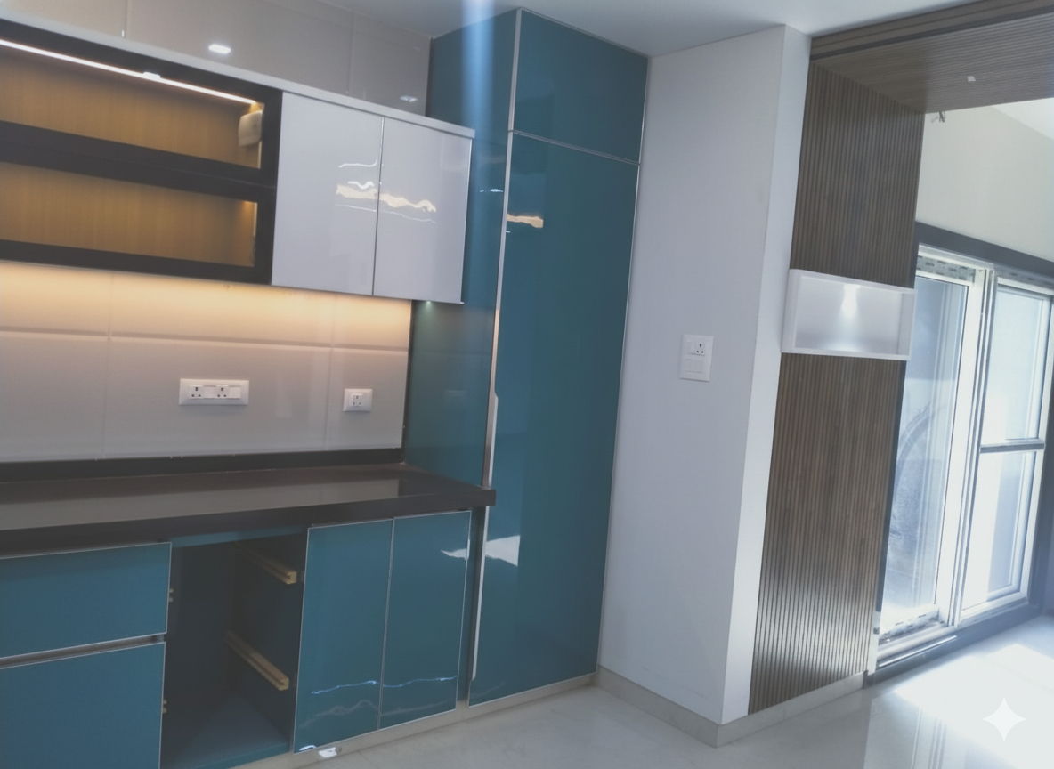 Modular kitchen with acrylic woodwork
